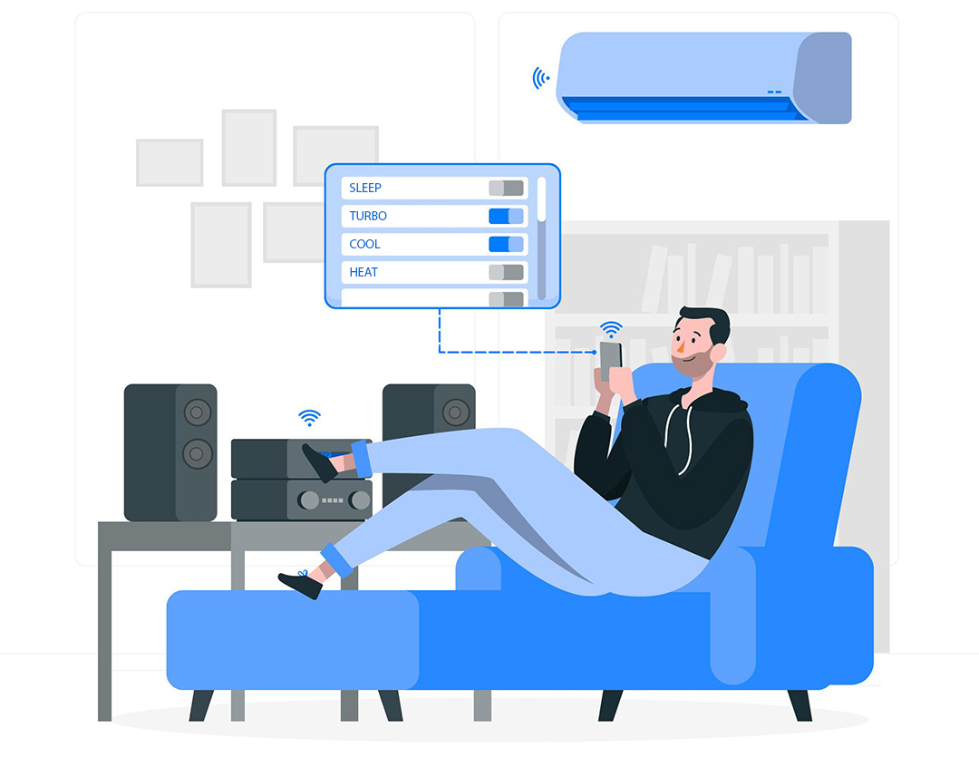 Управляет более, чем 1000 различных всемирно известных марок кондиционеров.Имеет функцию ручного поиска (плюс или минус) и автоматического поиска типа кондиционера, который позволяет легко и удобно найти подходящий тип кондиционера.Кнопки функций таймера на включение и выключение.Имеется функция часов.